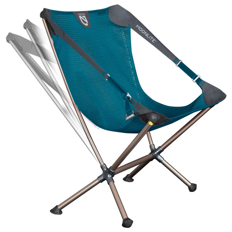 La chaise Moonlite Reclining Chair de la marque Nemo est fabriquée à partir de matériaux recyclés et elle a fière allure en camping. L’armature de haute qualité est robuste. Elle se plie facilement et rapidement grâce à une technique bien pensée.