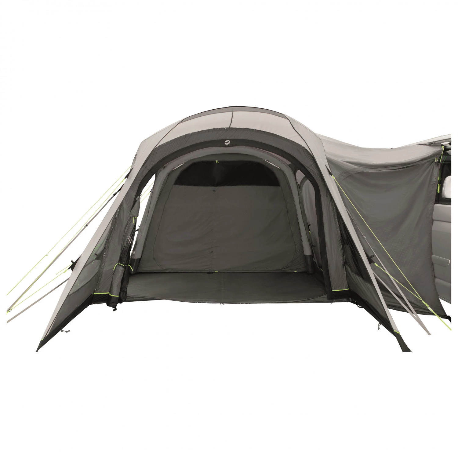 L’auvent pour van Blossburg 380 Air de la marque Outwell offre un agréable espace de vie ! Le double-toit imperméable et coupe-vent protège très bien contre les intempéries. Les ouvertures en mesh fournissent une ventilation agréable et améliorent le climat dans l’auvent. Toutes les fenêtres sont équipées de moustiquaires afin de tenir les insectes à distance. Vous pouvez donc aérer tranquillement et profiter de la vue. Trois entrées vous permettent d’entrer dans l’auvent ou le van. L’auvent agrandit l’espace de vie et les détails pratiques comme les fixations pour les lampes et les passe-câbles complètent le tout.