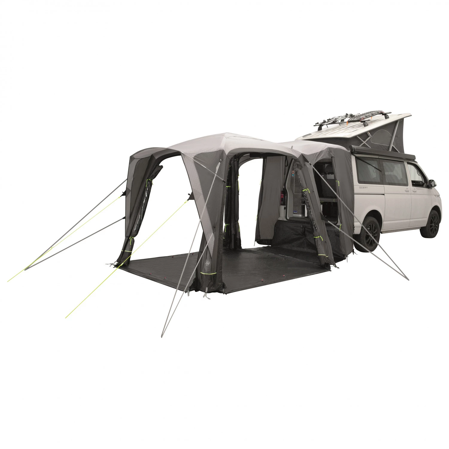 Le Linnburg Air Rear de la marque Outwell est un auvent compact pour van ! Grâce au matériau imperméable et coupe-vent, l’auvent protège bien contre le mauvais temps. Des panneaux en mesh apportent une bonne ventilation. En plus, vous pouvez aérer à tout moment par les grandes ouvertures. Les fenêtres sombres offrent une agréable intimité sans gêner la vue vers l’extérieur. Avec des rideaux, vous pouvez créer encore plus d’intimité si nécessaire. Vous pouvez entrer dans l’auvent de tous les côtés. Les fixations pour la lumière et les ouvertures pour les câbles sont des détails pratiques dans l’espace de vie.