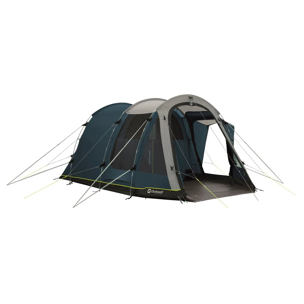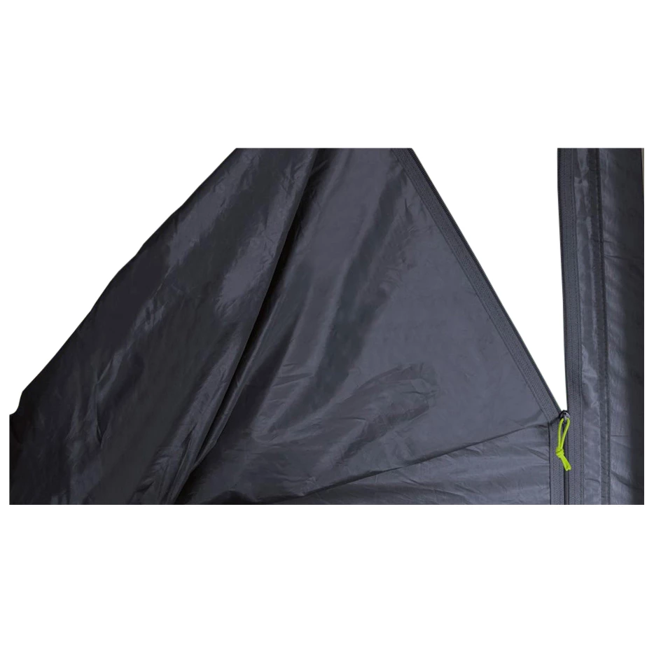 Grâce au matériau Outwell 6000, la tente est absolument imperméable. Les coutures étanchéifiées augmentent la protection aux points critiques. Le sol robuste avec son double revêtement protège de l’humidité par le bas et est directement relié à la tente. Elle est divisée en deux chambres et un vestibule pour garder de l’ordre et du confort. Les chambres sont obscurcies, ce qui favorise un sommeil réparateur, tandis que le vestibule est équipée de rideaux. Les entrées se chargent de la bonne ventilation, mais permettent aussi de rentrer et sortir plus facilement. Les moustiquaires éloignent les insectes. Des passe-câbles et des options de fixation pour des lampes complètent le tout.