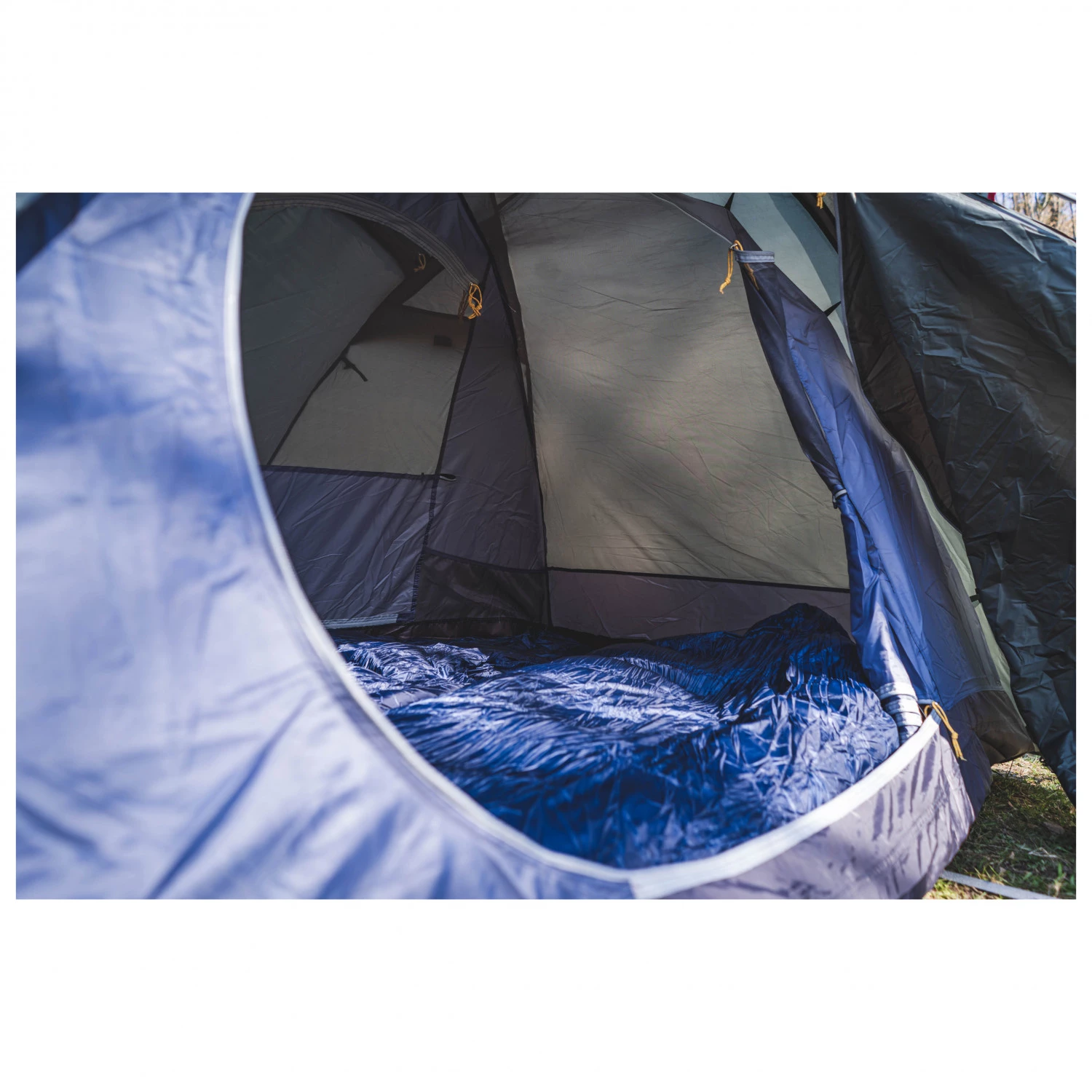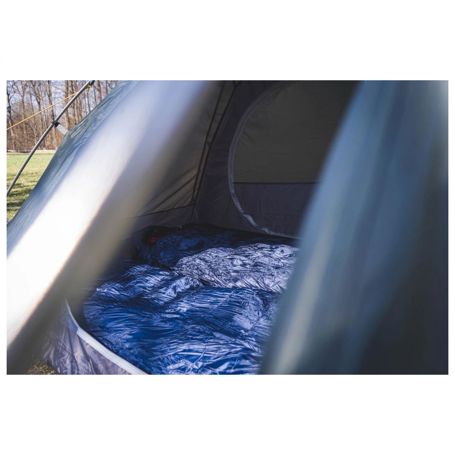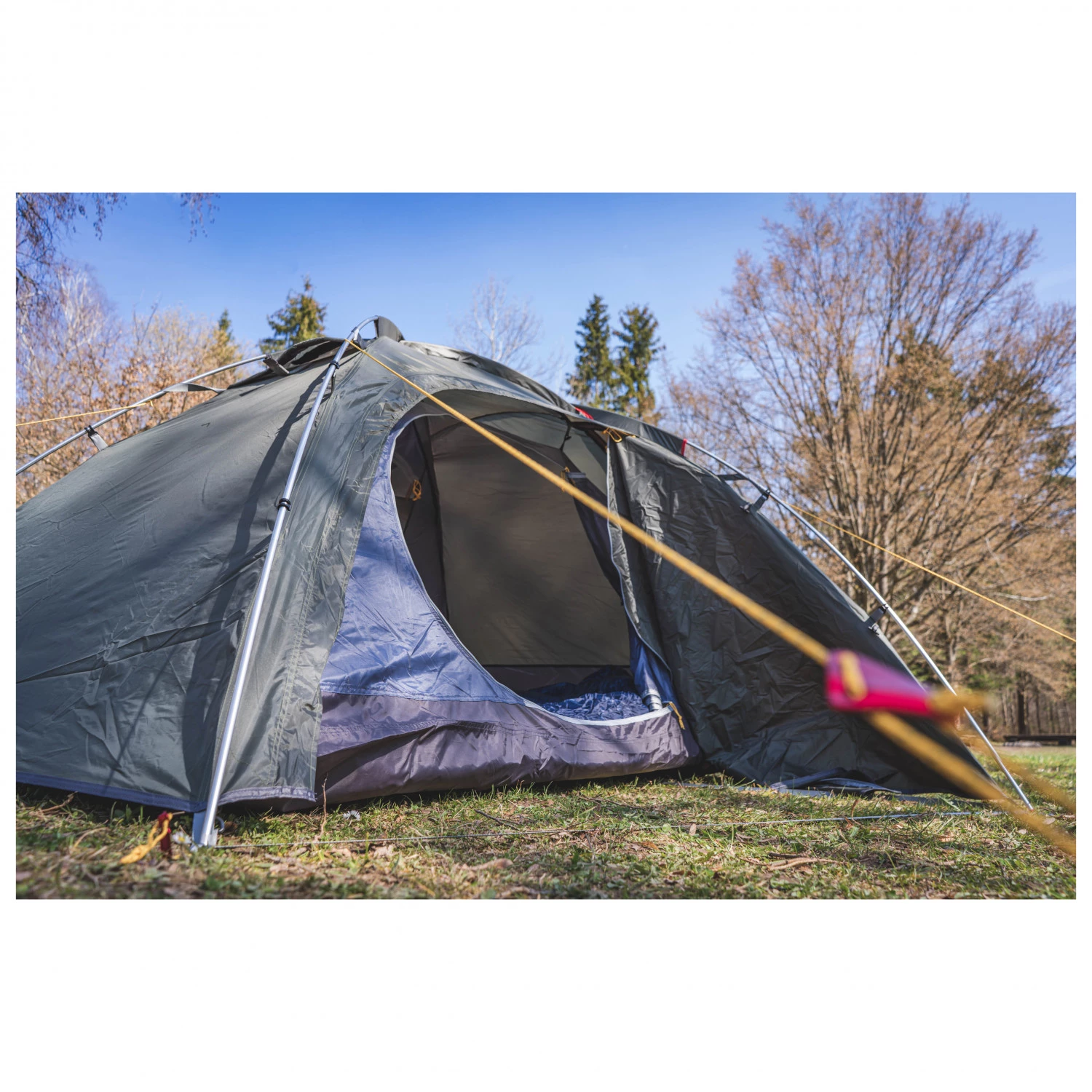 Plusieurs poches de rangement et des boucles de suspension à l’intérieur de la tente permettent de garder de l’ordre dans ses affaires et de rester à l’aise même quand vous ne pouvez pas sortir. Des grandes zones en mesh se trouvent sur les entrées pour laisser circuler l’air quand la tente intérieure est fermée. Grâce aux deux vestibules, il y a suffisamment d’espace pour les sacs à dos et autres équipements, même lors d’un voyage à deux. En plus, chaque personne a sa propre entrée : un réel avantage si vous avez des horaires de réveil ou de sommeil qui ne sont pas pareils !