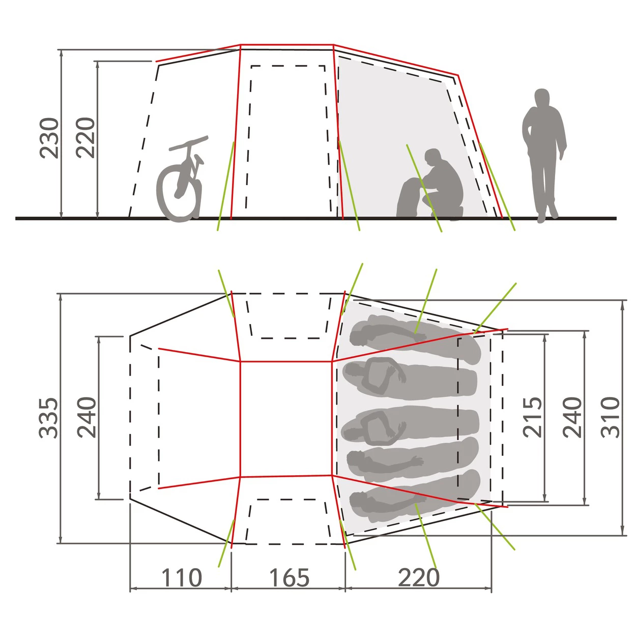 | Dimensions (intérieure) | 230, x, 315, x, 220, cm, (L, x, l, x, H) |