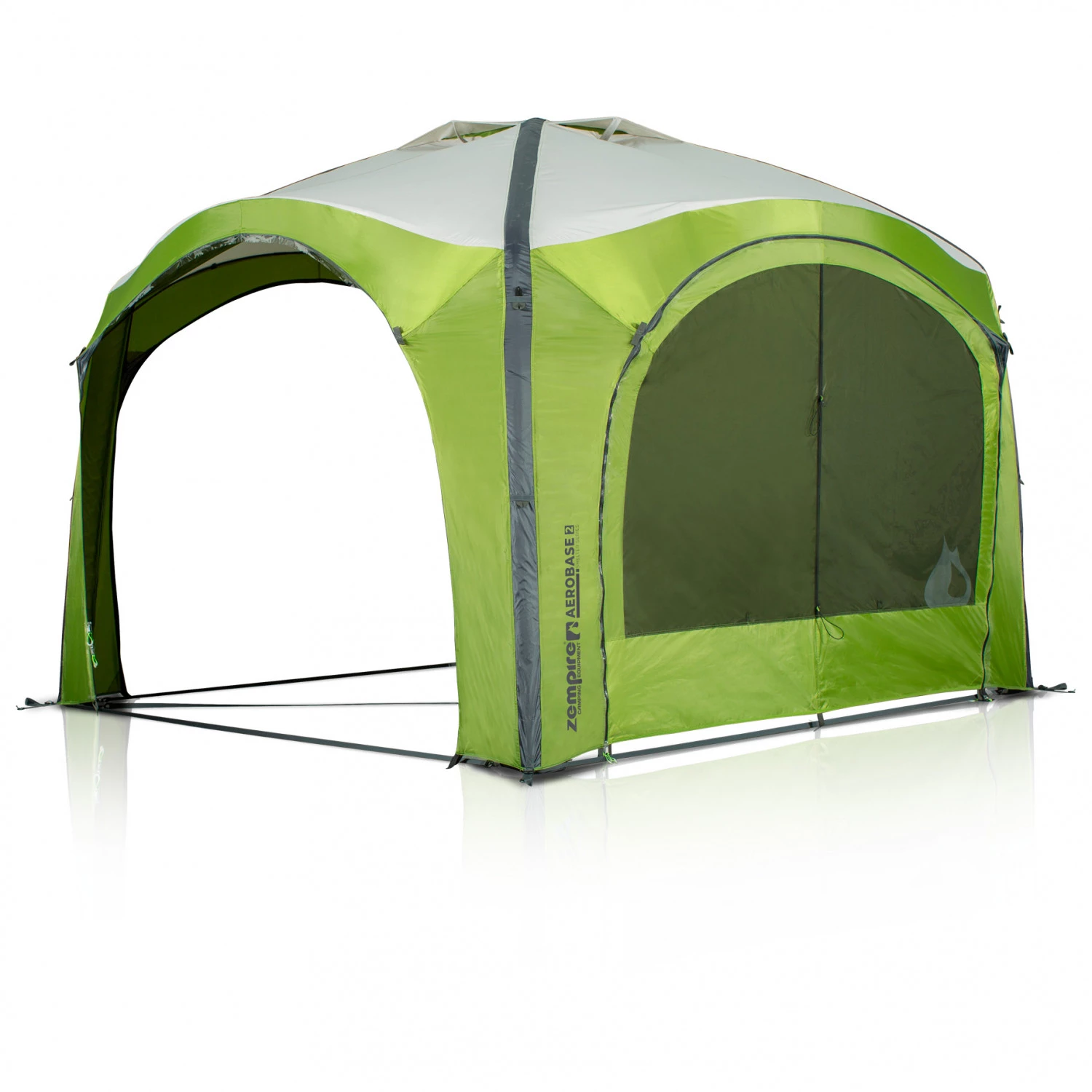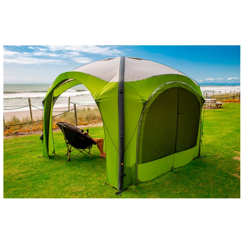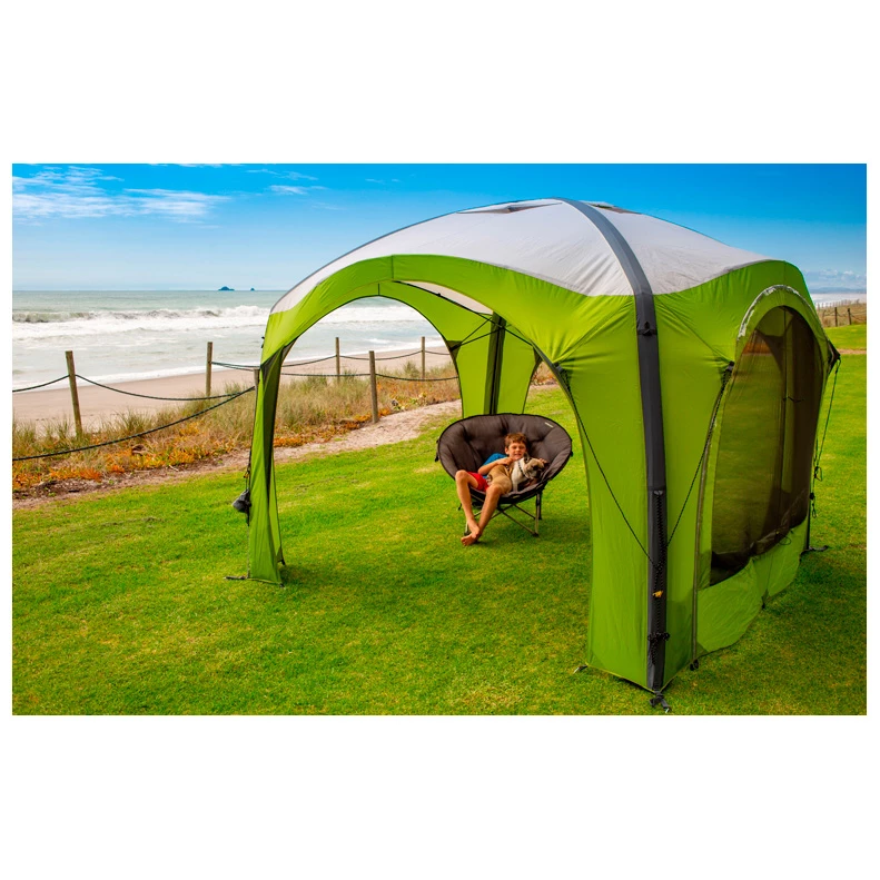 Idéal pour le camping et les garden-parties : l’Aerobase 2 + 1 Wall de Zempire ! Ce pavillon est équipé du système gonflable AirFrame et est en outre stabilisé par des arceaux en fibre de verre résistants au vent.
