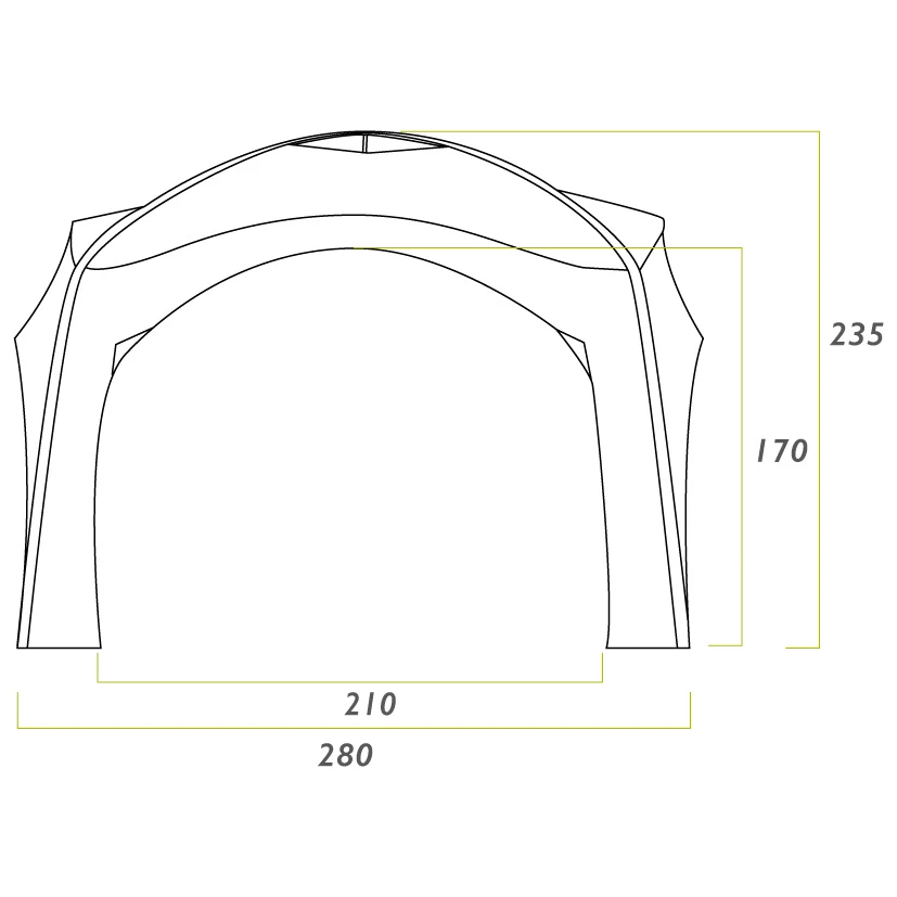 L’Aerobase 2 est livré avec une paroi Deluxe et se combine à volonté avec d’autres parois ou tunnels de liaison. Les coutures scellées offrent une protection fiable contre la pluie, tandis que le porte-lampe pratique permet un éclairage optimal.